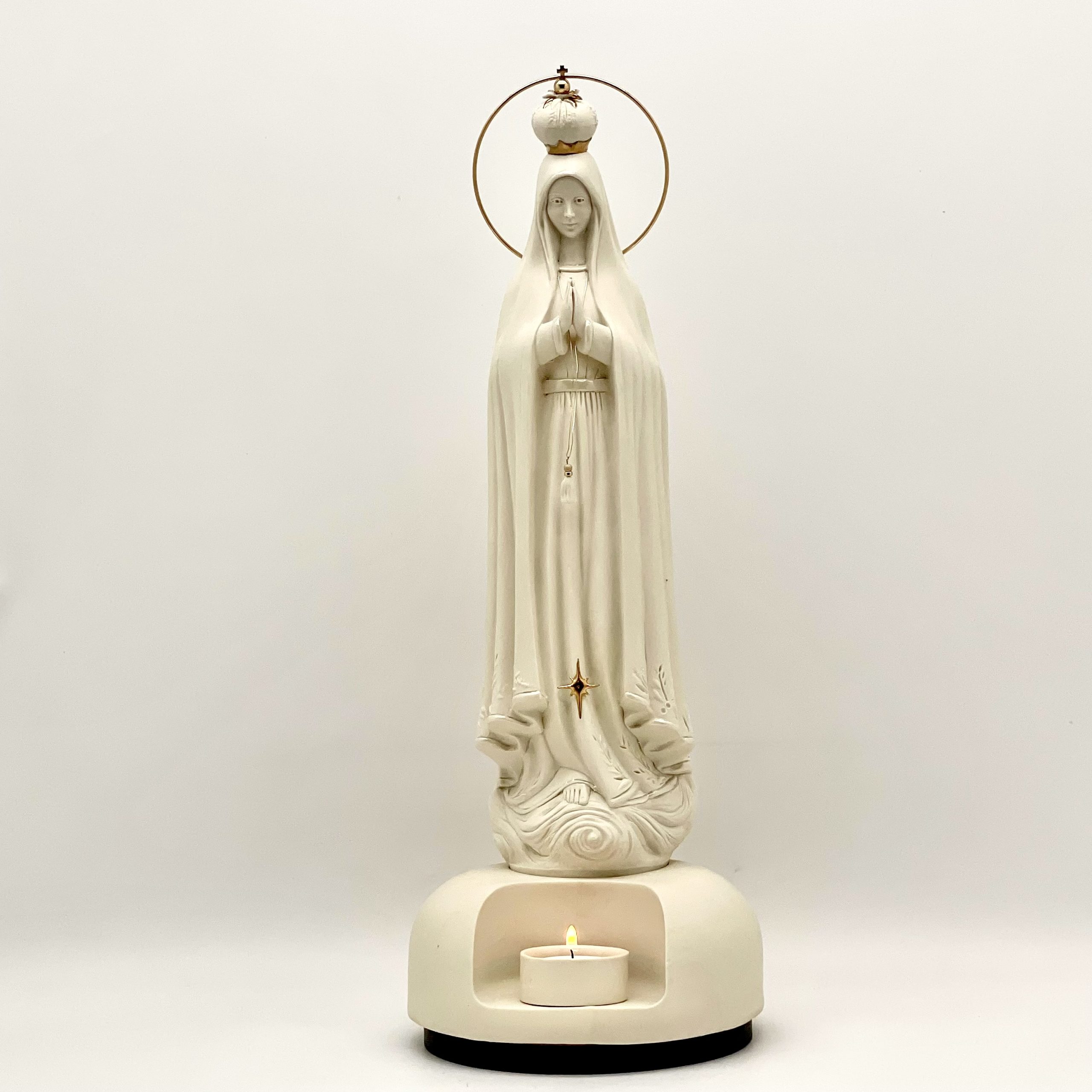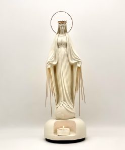 Base con un diseño moderno y elegante en la cual se inclye un espacio para veladora, es el elemento perfecto para realizar un altar en tu hogar.