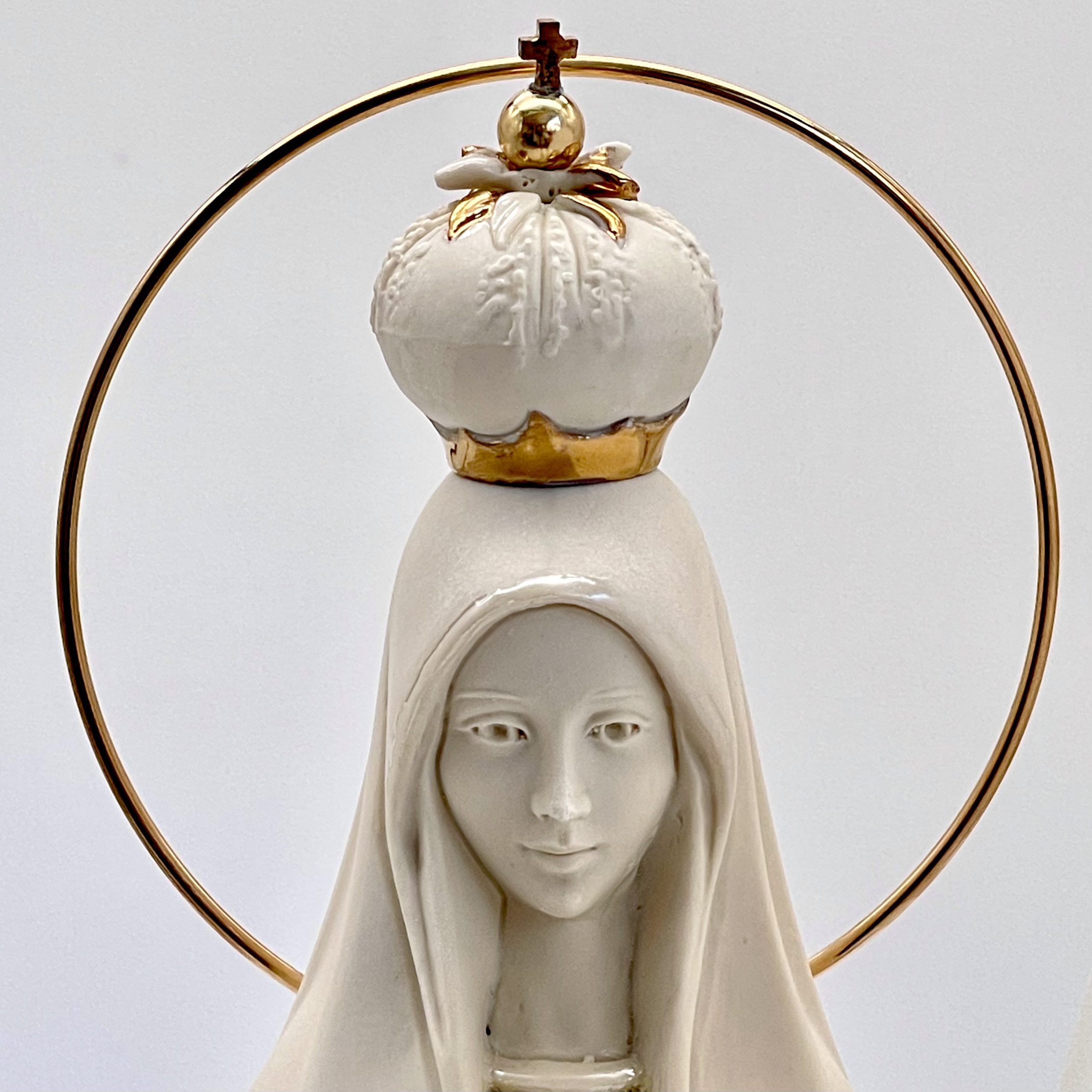 Corona de porcelana Ideal para completar la vestimenta de la Virgen de Fátima insirada en el encino, arbol sobre el cual se aparece la Virgen a los pastorcitos
